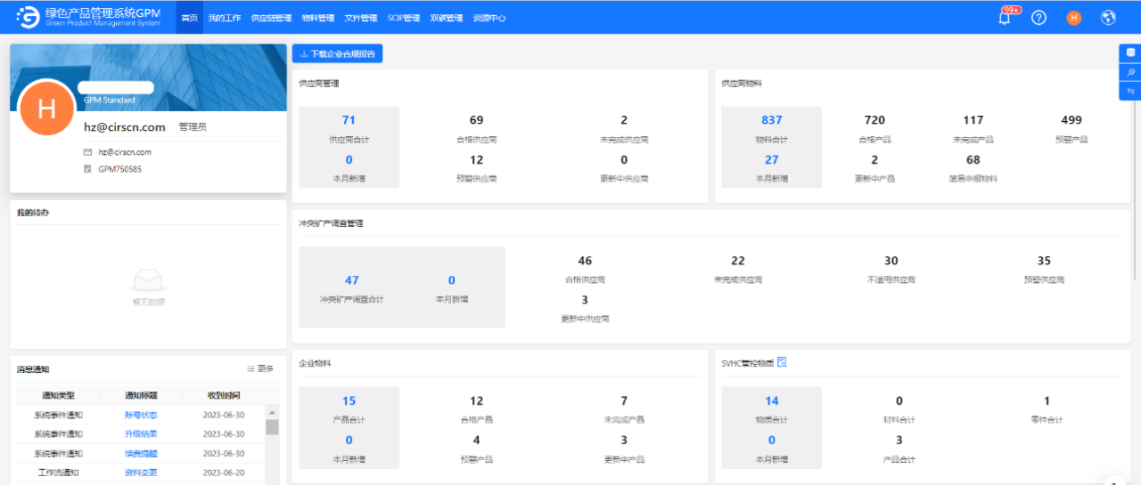 - 物料管理:有效的目视化管理设计,准确记录、展示企业所涉物料的基本信息,及物料的环保符合性情况;