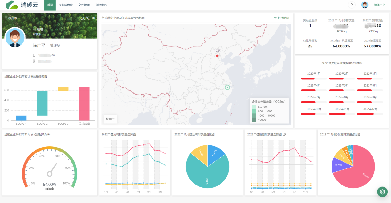 企业还可通过瑞碳云活动数据监视器,管理集团旗下多企业、多工厂、多供应商的排放源活动数据填报情况与碳排放结果,下载碳盘查各类技术支撑文件,以获得大规模企业复杂碳排放管理的全局视角。