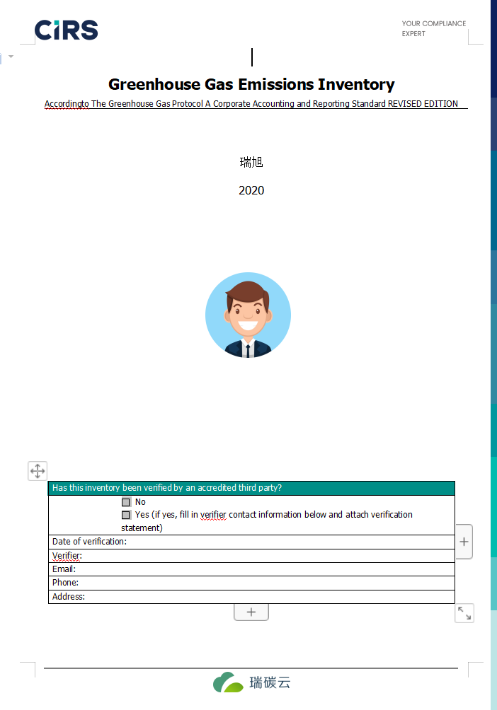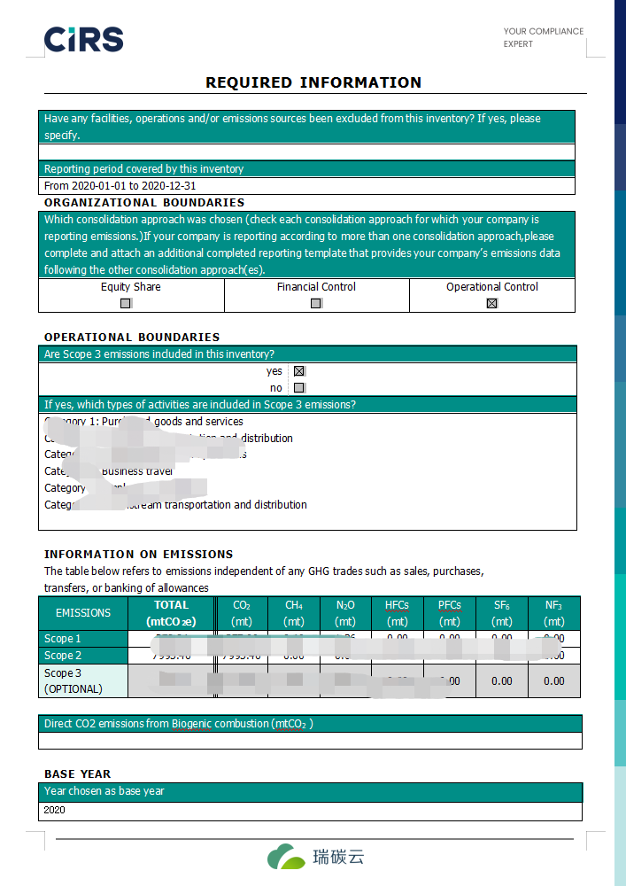 - “瑞碳云”出具可视化温室气体排放清单(分为依据GHG Protocol 和依据14064的两版排放清单)。